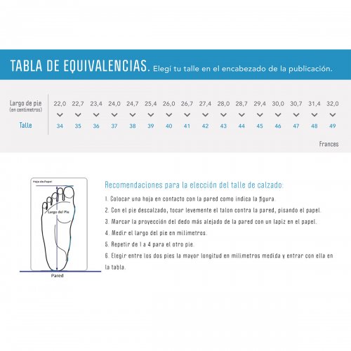 Artículo: 0FO-41F0 Descripción: BOTÍN OMBU FRANCÉS Color: Negro Puntera: Plástico Capellada: Cuero Flor y cuero napa en cuello Forro: Textil, con refuerzo de cuero en talonera Pasa cordón: Ojal Entreplanta: Poliuretano Bidensidad inyectado (expandido para mayor confort) Planta Exterior: Poliuretano Bidensidad inyectado (compacto para mayor durabilidad) Plantilla: Estándar de 2mm Alta visibilidad: Si, cinta reflectiva gris en lateral Versiones alternativas a pedido Plantilla resistente a la perforación: Plantilla de material textil integrada a la planta que brinda protección contra elementos punzantes o cortantes, sin quitar la característica comodidad de este calzado. Cubre el 100% de la superficie del pie Caucho/Goma: Inyección del suela en PU/Caucho, lo cual brinda una excelente resistencia al calor y al frío. Mayor grip y durabilidad. Posibilidad de hacer Caucho bidensidad, ÚNICOS EN EL PAÍS Abrigo: Capellada con forro inteligente, manta térmica que proporciona aislamiento frente al frió exterior, permitiendo liberar el vapor de humedad generado por el pie Protección Metatarsal: Protección de composite que brinda seguridad ante la caída de elementos pesados y/o cortantes sobre la parte superior delantera del pie. A continuación de la puntera de seguridad.